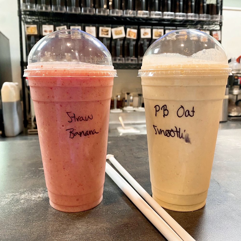 Peanut butter, banana, oats, honey, yogurt and almond milk